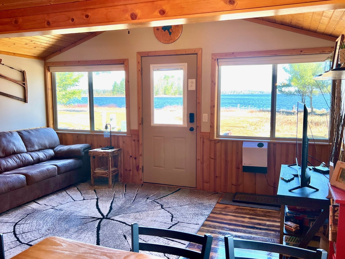 Look out the window at beautiful Lost Land Lake. Enjoy a campfire-firewood provided!